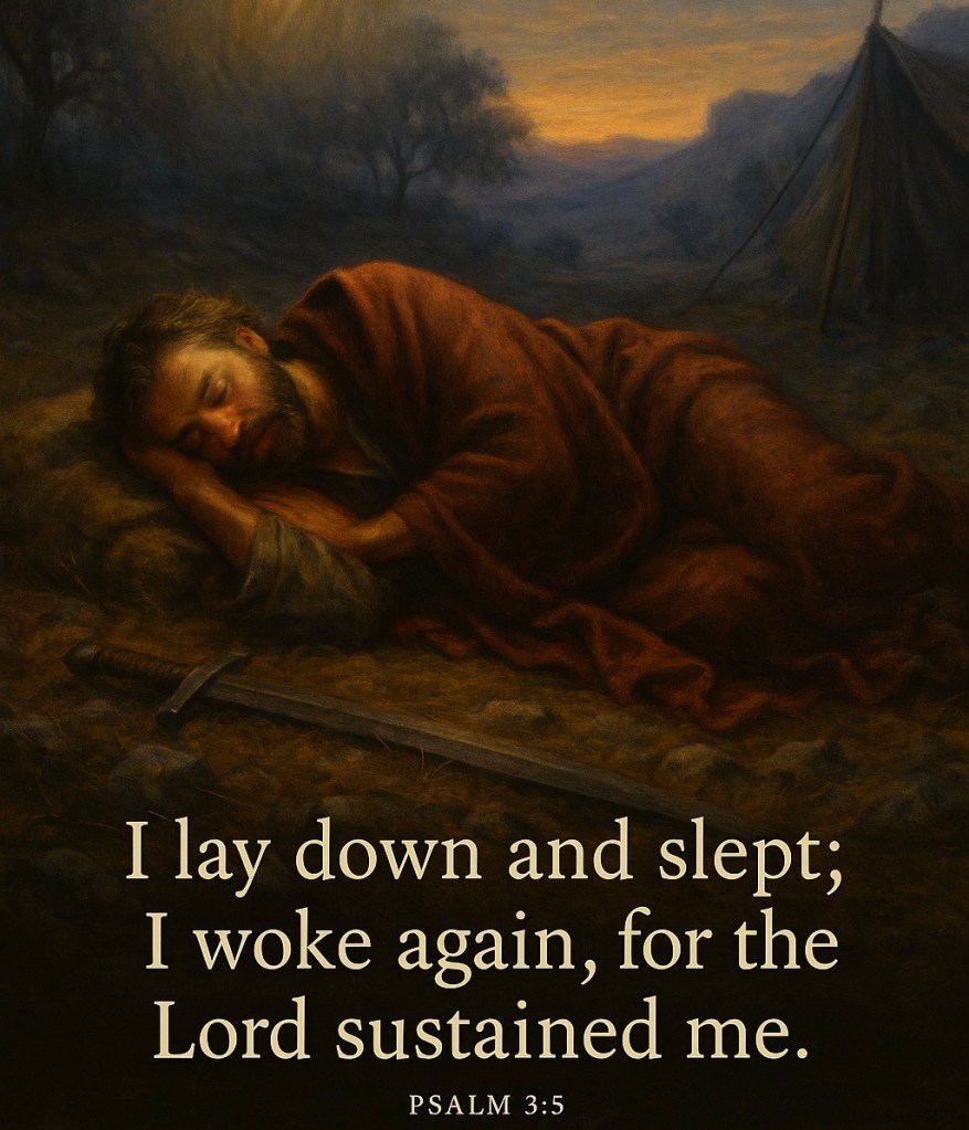 He had once crept through the night and stolen Saul’s spear while he slept—he understood how vulnerable sleep can be. And yet, even with enemies encircling him, David did not lose sleep. His confidence in God was vindicated. He lay down, not in fear, but in faith—and God sustained him through the night.