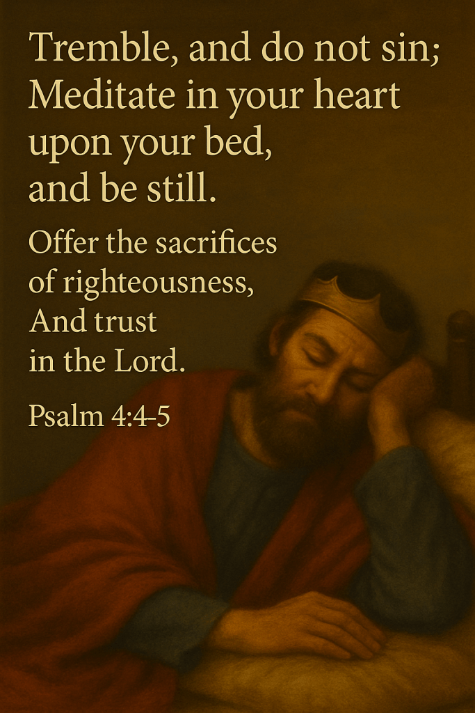 “Tremble, and do not sin; meditate in your heart upon your bed, and be still. Offer the sacrifices of righteousness, and trust in the Lord.”