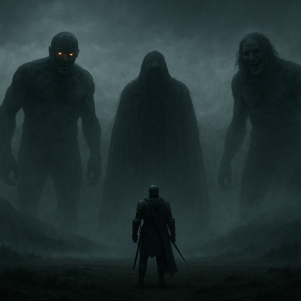 Sir Constant, though weary from his journey, gripped his sword tighter. He had heard of these giants. All who walked the Splendid Way faced them sooner or later. Many turned back. Others knelt in surrender.